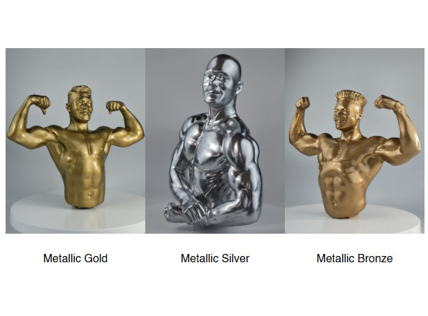 Shiny metallic coatings resembling precious metals. The models are manufactured with the latest 3D printing in high-quality resin, followed by hand-applied metallic coatings, making every figurine stand out.